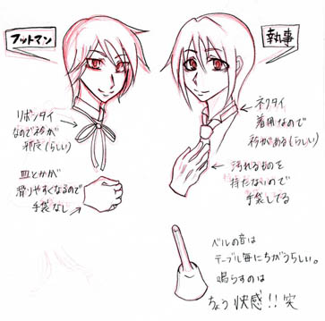 執事は手袋あり襟は少しありネクタイ(ネクタイだから襟がある)